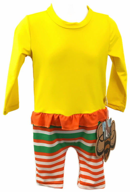 Little Gal's Yellow Long Sleeve UV Sun & Swim Suit